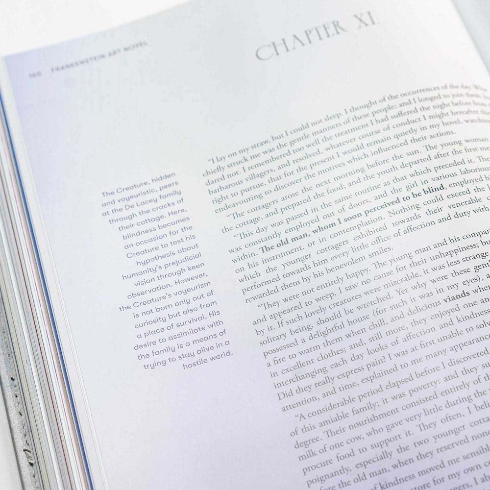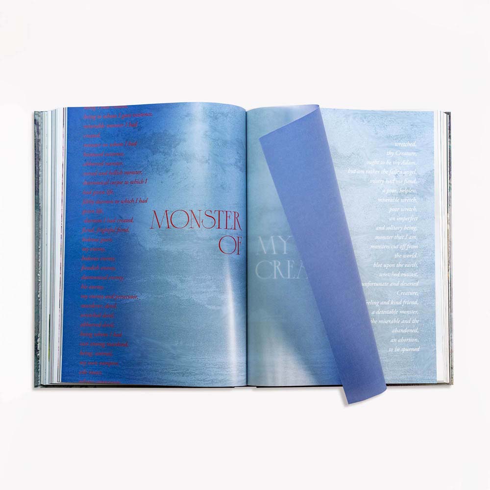 Experience Frankenstein like never before in this luxurious Art Novel that unites Mary Shelley’s Gothic masterpiece with contemporary fine art. Featuring Electrified Oak (2023) by artist Sam Gulliver, the striking cyanotype cover channels lightning through timber, reflecting the novel’s timeless tension between nature, creation, and technology.