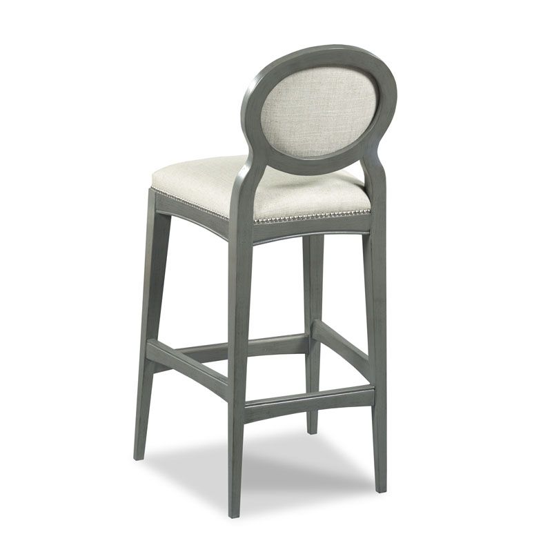 With its sleek silhouette and graceful details, this upholstered counter stool combines comfort and elegance. Crafted from hardwood solids, it features tapered legs, curved apron rails, and low stretchers for added stability. The upholstered seat and back offer cushioned support, while nailhead trim adds a refined finishing touch.