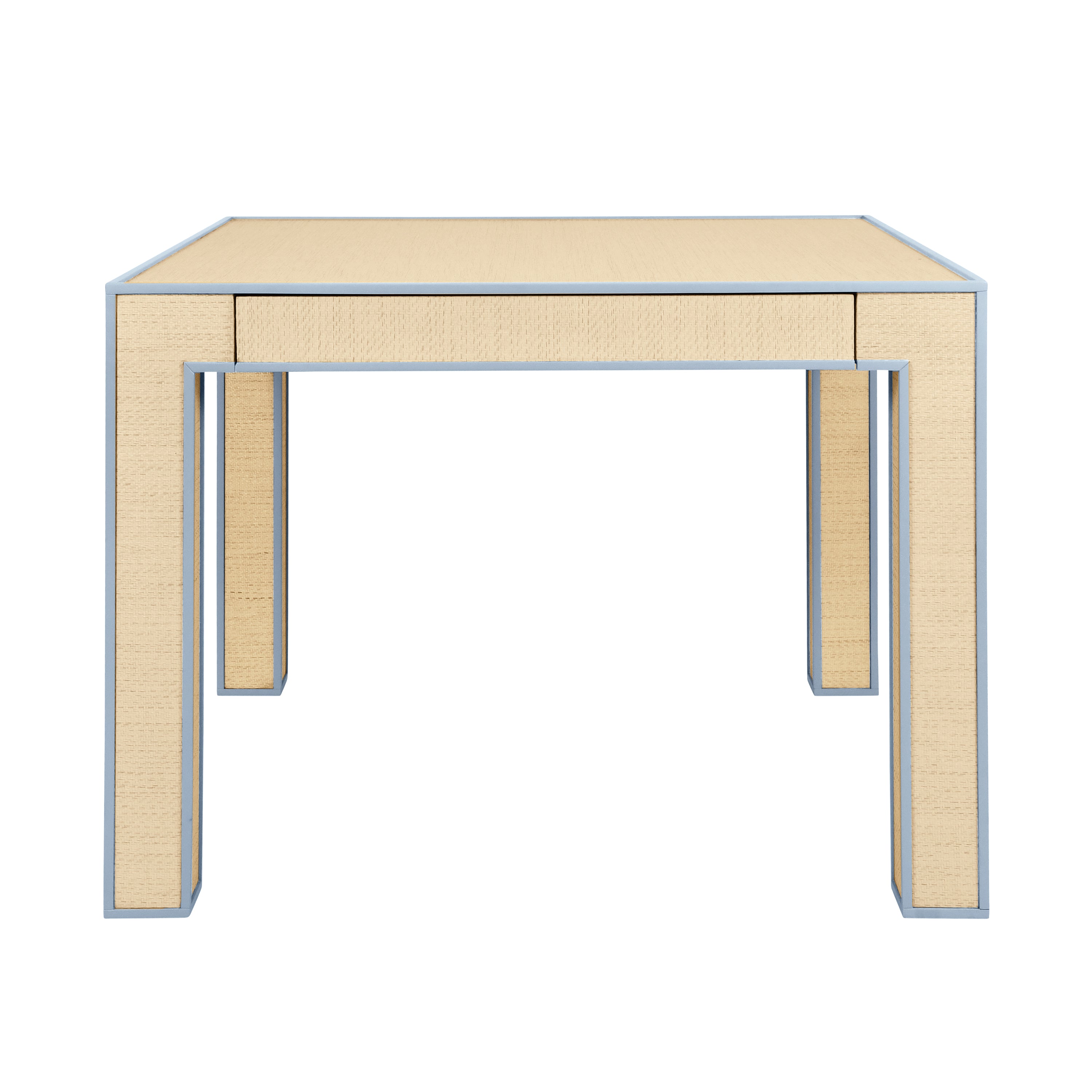 The Collins LB Game Table embodies refined leisure and versatile luxury. A matte light blue lacquer frame defines its clean silhouette, while the inset natural grasscloth top adds organic warmth and texture. Two hidden drawers offer convenient storage, keeping the look effortlessly polished. Perfect for both relaxed game nights and sophisticated gatherings.