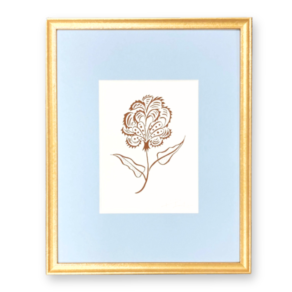 This botanicals print series has been created by Kayce Hughes and hand-silkscreened in brown onto soft white paper.