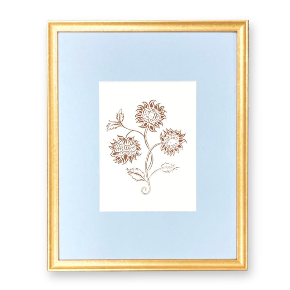 This botanicals print series has been created by Kayce Hughes and hand-silkscreened in brown onto soft white paper.