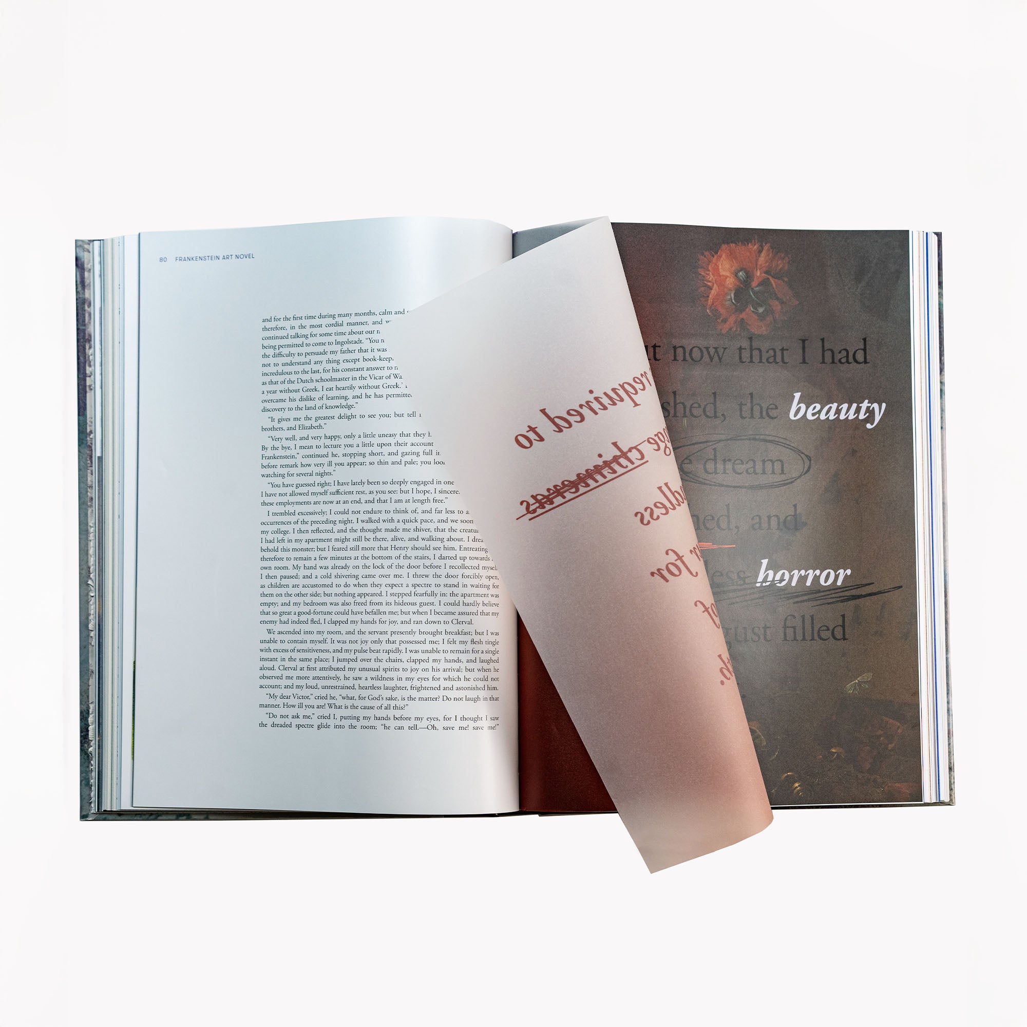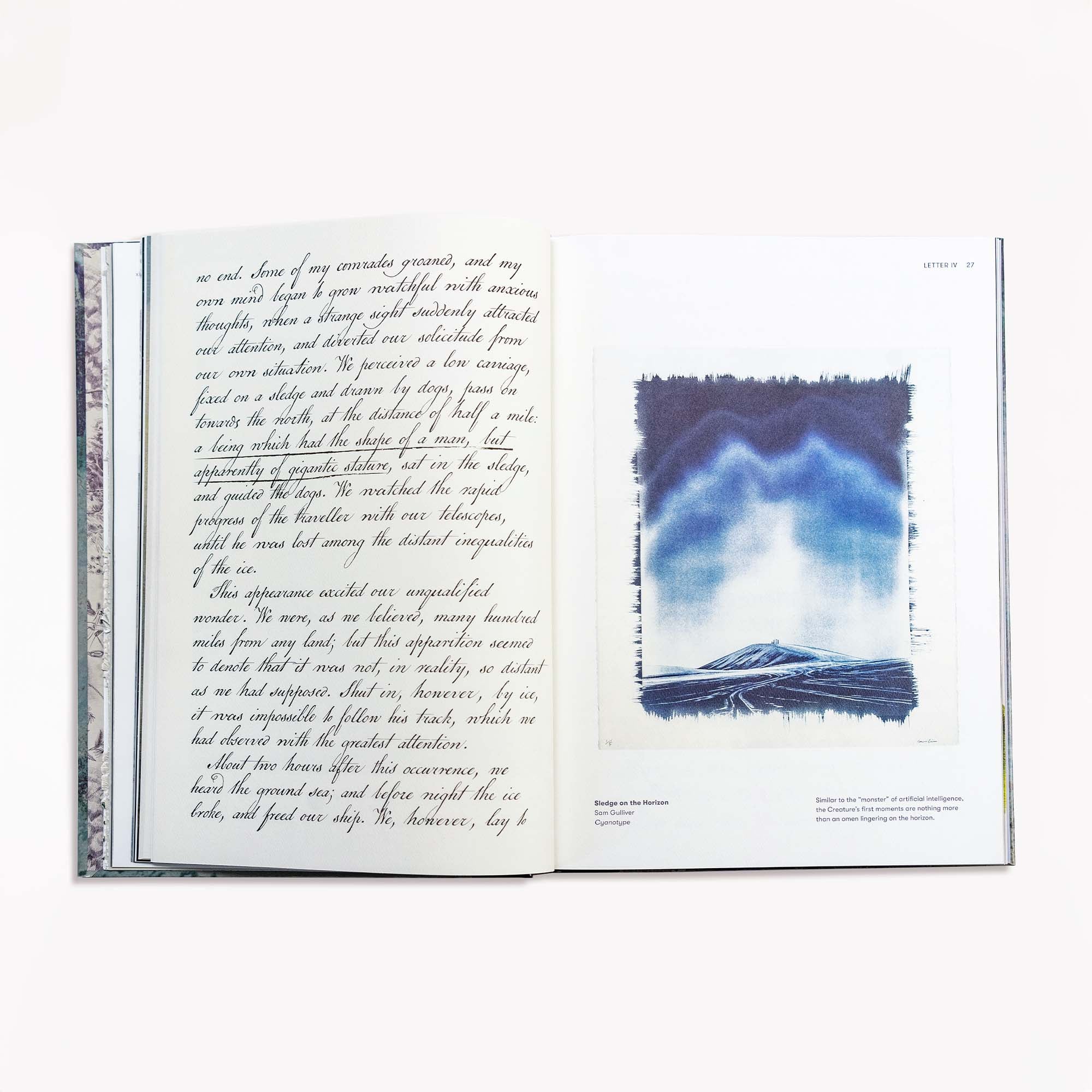 Experience Frankenstein like never before in this luxurious Art Novel that unites Mary Shelley’s Gothic masterpiece with contemporary fine art. Featuring Electrified Oak (2023) by artist Sam Gulliver, the striking cyanotype cover channels lightning through timber, reflecting the novel’s timeless tension between nature, creation, and technology.