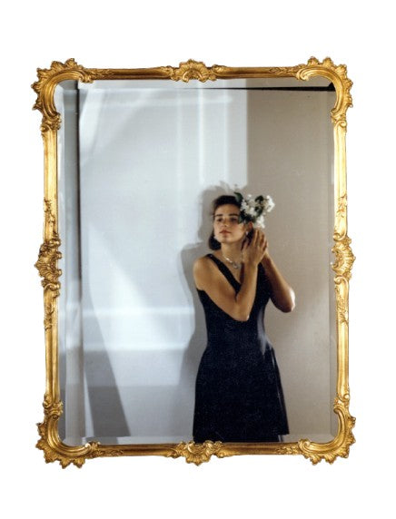 Elegant and versatile, this Chippendale mirror features refined Rococo-inspired C-scrolls, floral motifs, and a slender silhouette. Designed to hang vertically or horizontally.