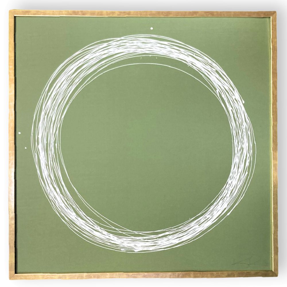 This original acrylic painting has been created on silk. It is professionally framed behind anti-glare museum glass and an antique gold frame with dark sides.