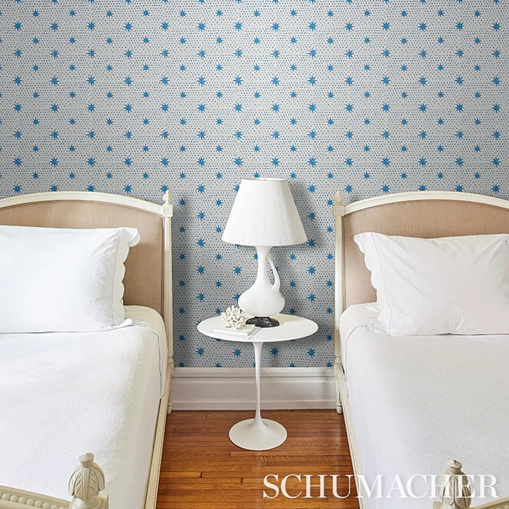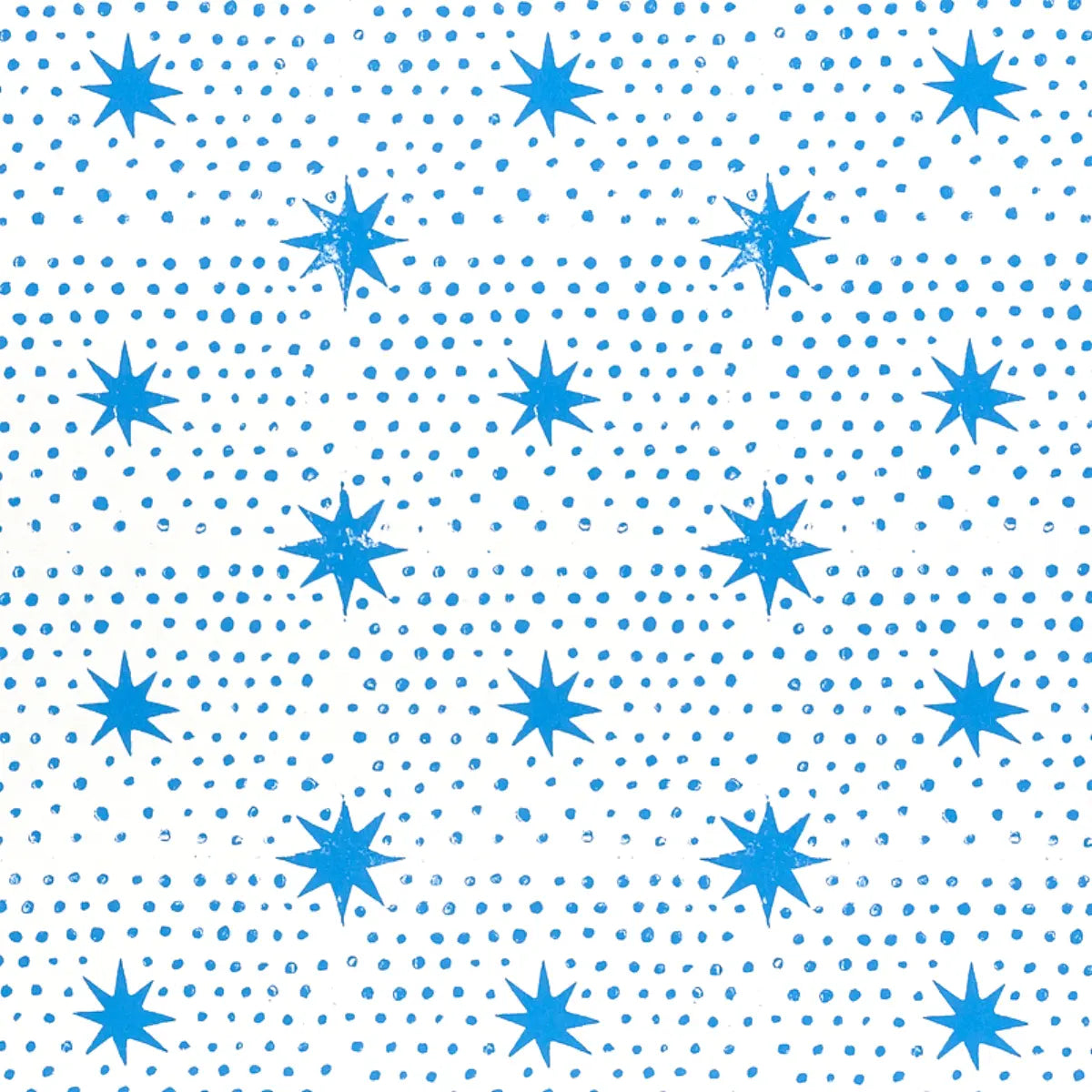 Inspired by the Renaissance artist Giotto, this enchanting dot and star design from artist Molly Mahon recalls the heavens in a charming block-print style.