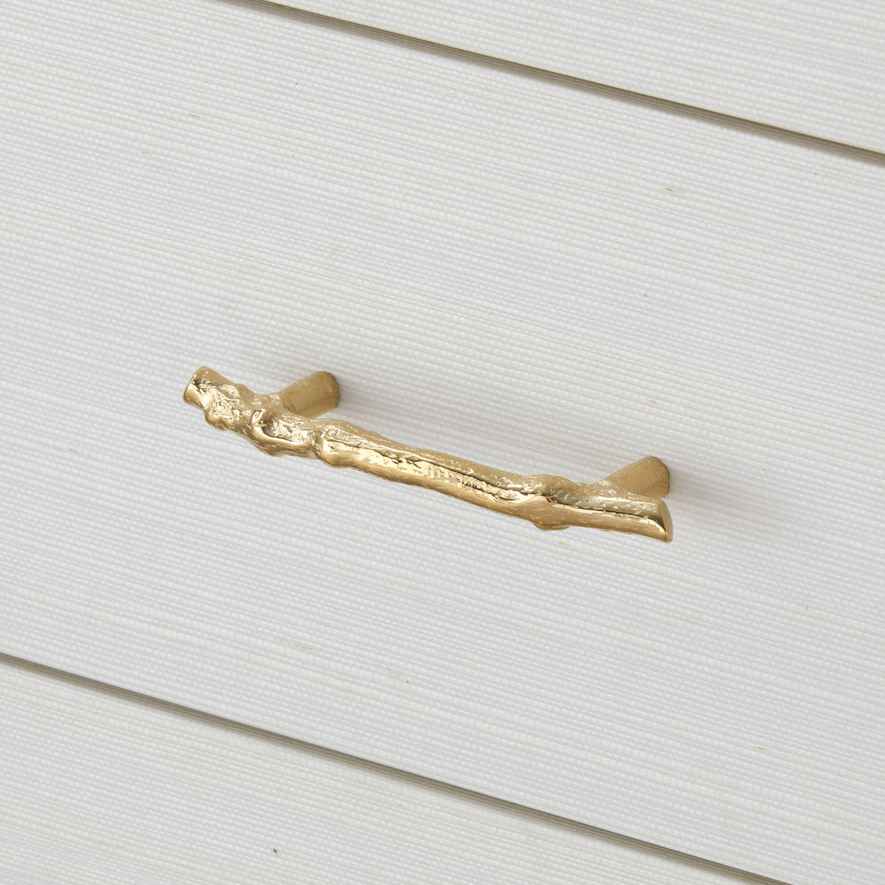 The Camden Collection combines clean-lined sophistication with subtle natural charm. Wrapped in smooth grasscloth, each piece features polished brass sabots and a sculptural twig-shaped drawer pull for an organic accent. A slightly smaller top drawer adds function and elegance. Grounded yet refined, Camden brings a balanced, elevated touch to any space.