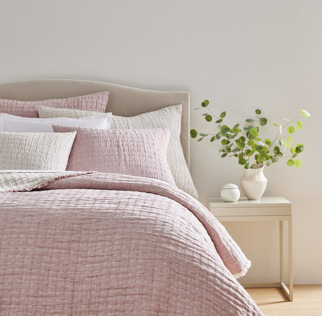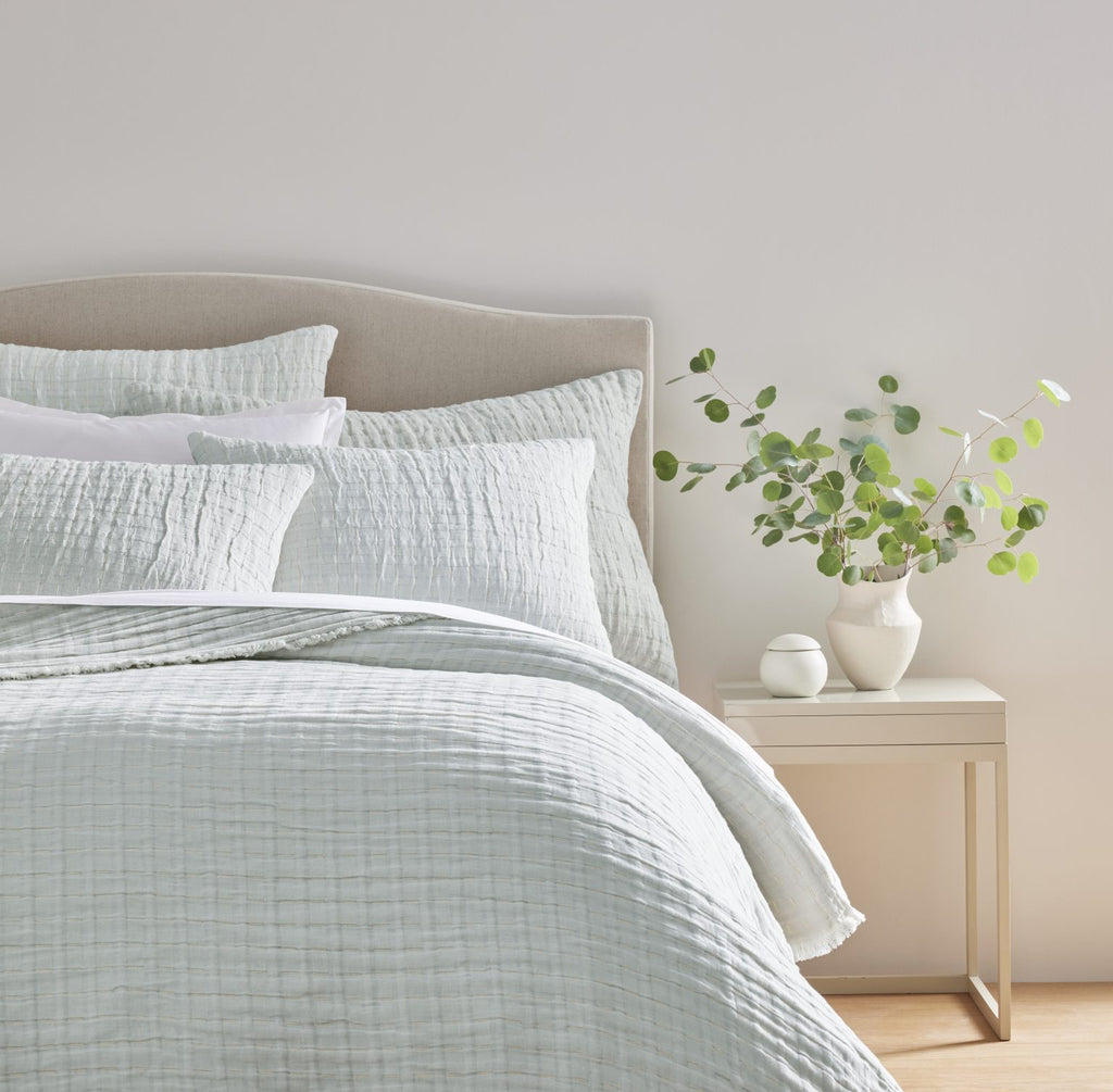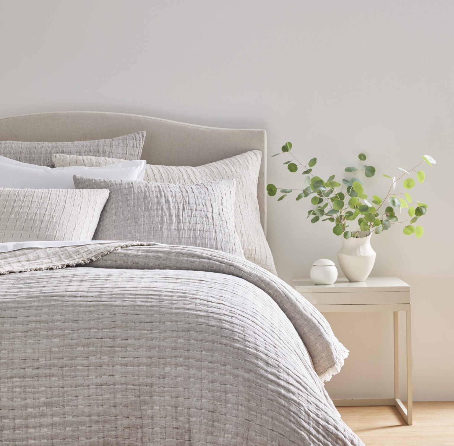 Devon stone washed coverlets and shams are reversible to natural linen. Offered in 6 great colorations, Devon throws and coverlets are finished with an eyelash fringed edge. Made exclusively for TL at Home in Portugal.