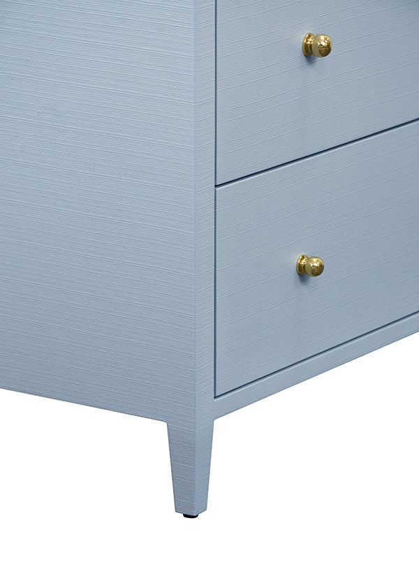 This elegant seven drawer chest offers both style and functionality, featuring a clean, timeless design with ample storage. Crafted with attention to detail, it's available in a range of luxurious finishes: natural grasscloth, textured white linen, burl wood, and textured light blue linen. Whether you're going for a natural, refined, or bold look, this chest adds a sophisticated touch to any bedroom or living space.