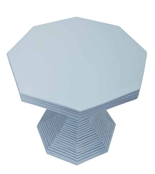 Bring a unique blend of natural texture and contemporary style into your home with this Octagonal Rattan Reeded Feature Table, available in small and large sizes. The painted light blue finish adds a soft, serene touch, while the rattan reeded panels showcase the beauty of natural variations, making each piece one-of-a-kind.